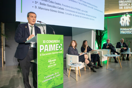 El Colegio Oficial de Médicos de Alicante (COMA) ha acogido esta tarde el inicio del XI Congreso Nacional del PAIME, una cita que se celebra los días 19 y 20 de febrero en el Palacio de Congresos de Alicante, y que reúne a referentes nacionales e internacionales para impulsar el futuro del Programa de Atención Integral al Médico Enfermo (PAIME) bajo una idea central: reforzar, actualizar, apostar por la prevención y proyectar el cuidado de la salud mental de los médicos a través de este exitoso programa con más de 25 años de solvencia, impulsado por la OMC a través de su Fundación para la Protección Social. El mensaje en la jornada inaugural ha sido unánime: la salud mental de los médicos exige respuestas estructurales, colaboración institucional y una mirada valiente hacia el futuro. Así, el XI Congreso PAIME impulsa una agenda común para integrar la salud mental médica en las políticas sanitarias.