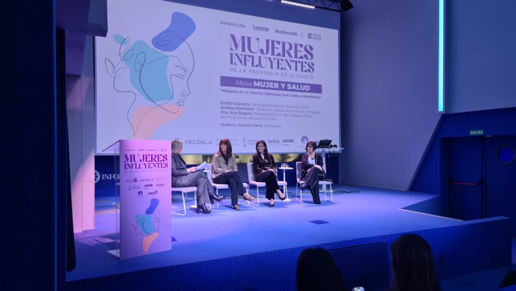 El cierre llegó con “Mujeres en Saud: Liderazgo que cuida y transforma”, mesa moderada por la periodista de Informacióntv Victoria Ferrá, con Emilia Guevara (SATSE), la Dra. Andrea Bernabeu (Instituto Bernabeu) y la Dra. Ana Segura, vicepresidenta 2ª del Colegio Oficial de Médicos de Alicante (COMA). Desde el arranque, la Dra. Segura explicó que la feminización de la Medicina no es un “futurible”, es presente, con mayoría de profesionales del colectivo médico mujeres y alrededor del 70% del alumnado en las facultades del Grado de Medicina. Sin embargo, esa realidad aún no se refleja en la toma de decisiones: “cuando hacemos la foto de los equipos directivos sigue predominando el factor masculino”, señaló.
